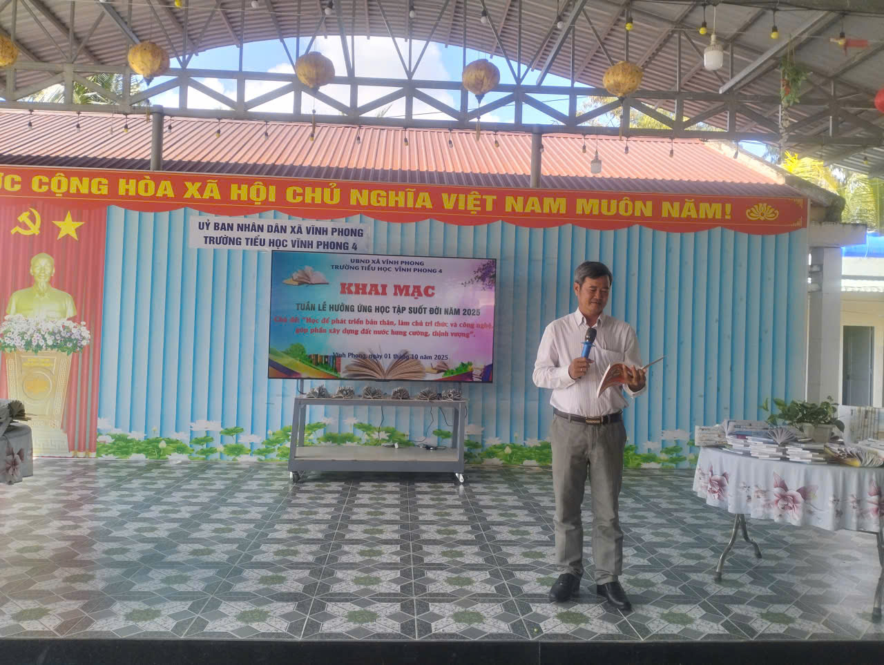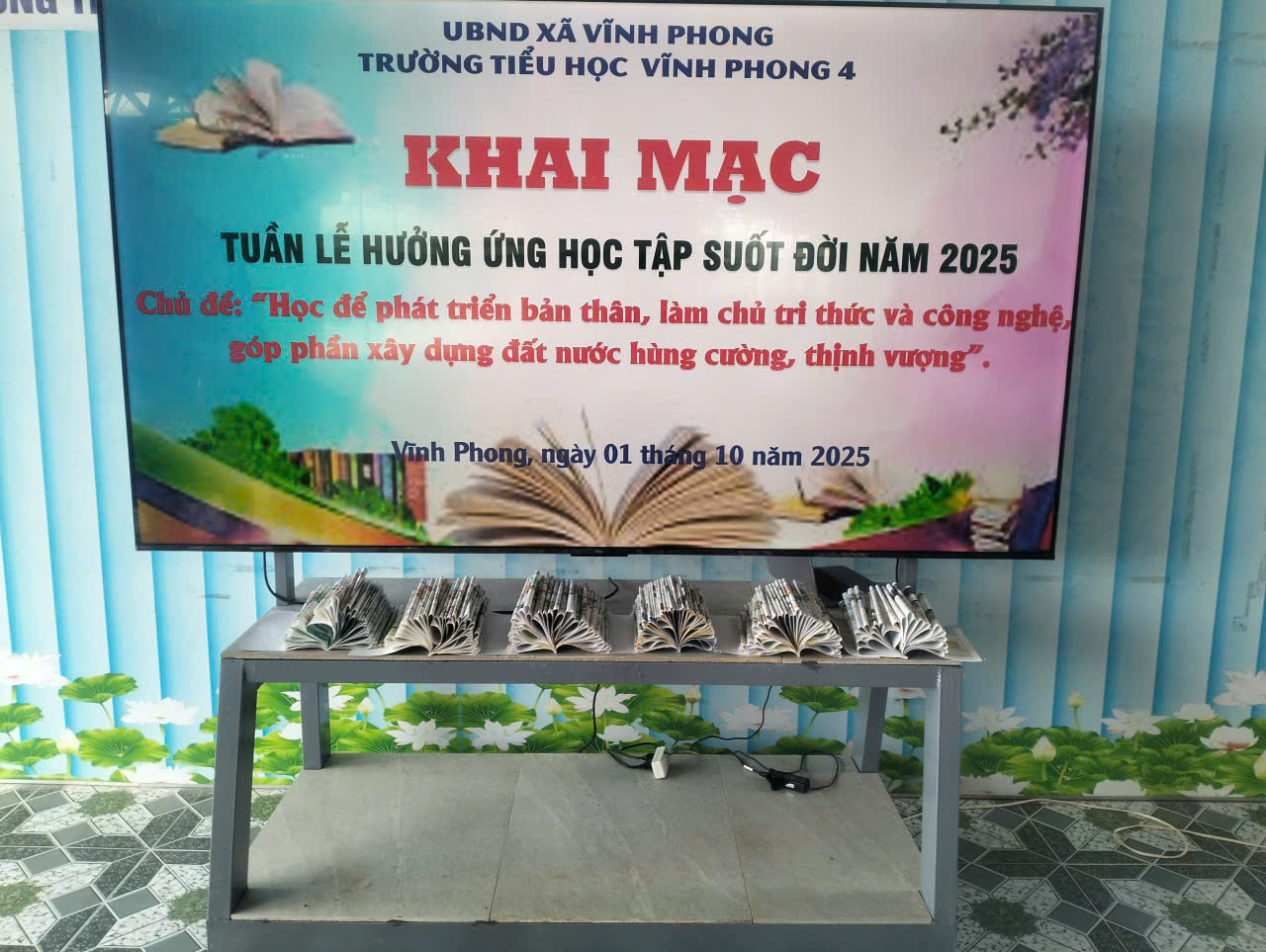 Trường Tiểu học Vĩnh Phong 4 tổ chức Tuần lễ hưởng ứng học tập suốt đời năm 2025 với chủ đề “Học để phát triển bản thân, làm chủ tri thức và công nghệ, góp phần xây dựng đất nước hùng cường, thịnh vượng”.